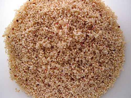 Amaranth is an ancient pseudograin which has been used for millennia for its leaf and its seed. In the sprout world we generally use it as a seed, though it can be grown into Micro-Greens as well. We don't offer it as such because we find its flavor unpleasant. It is a very tasty sprout with a great texture - it sorta pops like popcorn when you bite down on it. It's a very tiny seed, which produces red-tinged sprouts whether you Soak it or not. You can toss some Amaranth Sprouts into or onto just about anything you eat. Their size is a great visual addition to any dish. Several studies have shown that Amaranth has a positive effect on a variety of ailments; hypertension, heart disease and cholesterol to name a few.