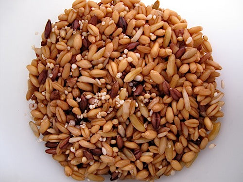 An awesome combination of grains makes this mix a nutritional extravaganza and a very sweet taste treat. Very easy and quick to grow. A great breakfast cereal - our favorite use - add some fruit and liquid and dig in. Add some dried fruit and make some Live Trail Mix. Make some bread with a handful or three of Amber Waves and you've got truly whole grain bread!