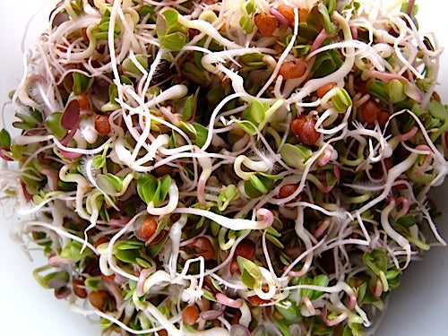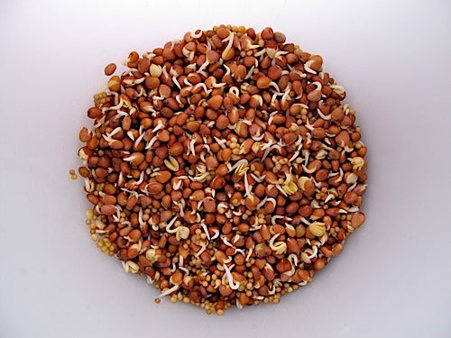 Hot2 is tangy combination of hot brassicas. The Radishes taste exactly like Radishes, the Mustard tastes like horseradish. Mmmmmmmmmmm! The Oriental Mustard is a yellow seed and is the only non-mucilaginous Mustard we've ever seen and therefore the only Mustard you can sprout in a conventional sprouter.