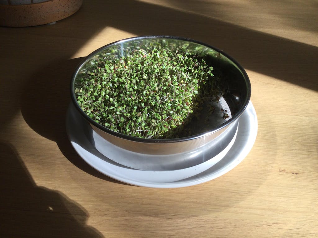 Brassicas - Broccoli, Radish, Mustard, Cabbage, etc. Thanks to this lovely round tray, we can now grow Brassicas vertically, as we do Leafy Sprouts!
