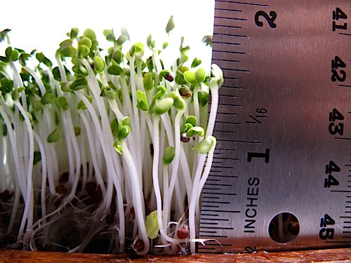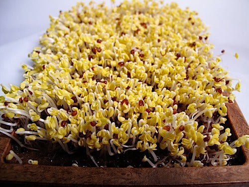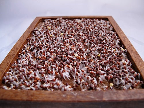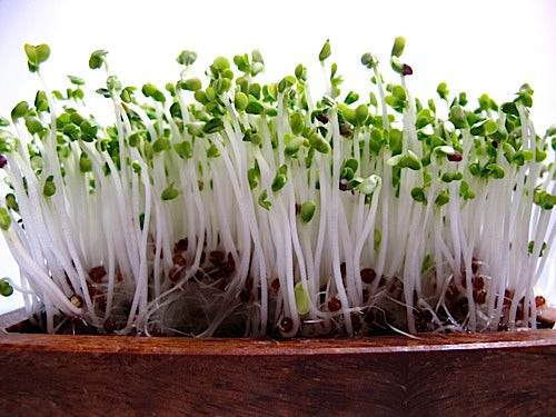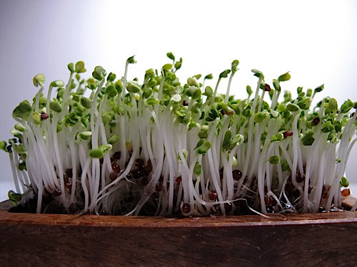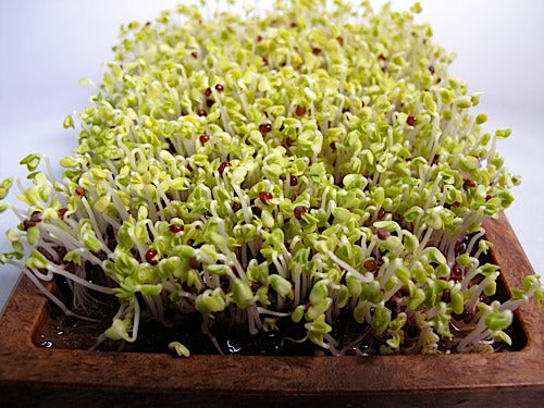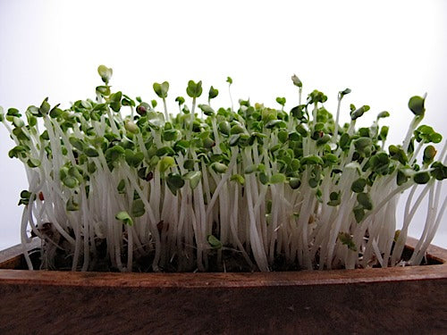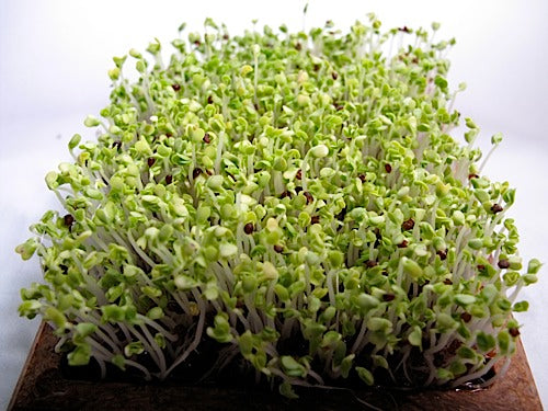 The germination rate of these microgreens is off the chart! It only took 2 days for a tiny dense forest of delicate greens to emerge. The seeds are tiny, use half of what you think you need as to not overcrowd the growing tray. The exquisitely mild flavor is sure to delight the palate of any mustard connoisseur.