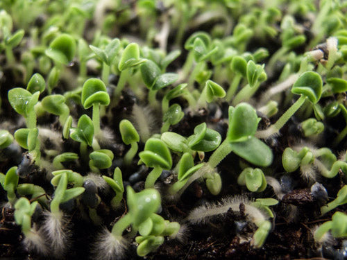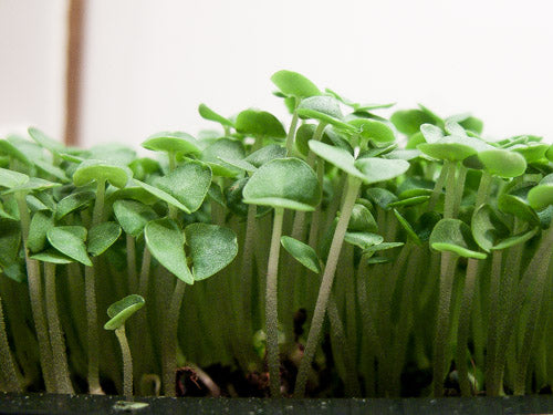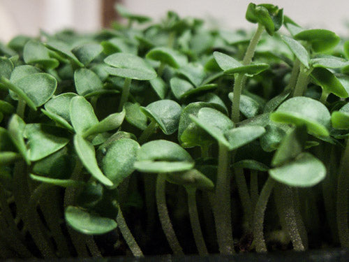 A unique (mucilaginous) seed, Basil forms a sack around each seed when it comes into contact with moisture. We sell Sweet Basil. Basil is a difficult Micro-Green to grow, but done properly it tastes wonderful and can even yield additional cuttings.