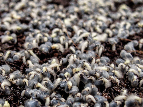 - Plant 1-2 teaspoons of seed (for a 5x5 inch Tray) on thoroughly moistened medium.