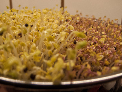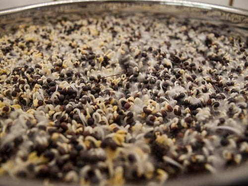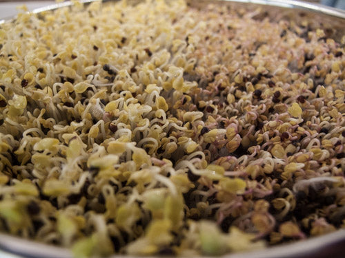 Put seed* into a bowl or your Sprouter. Add 2-3 times as much cool (60-70°) water. Mix seeds up to assure even water contact for all. Allow seeds to Soak for 8-12 hours.