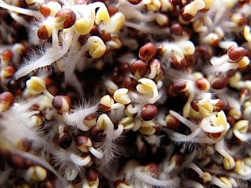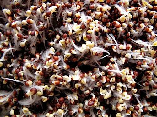 Put seed* into a bowl or your Sprouter. Add 2-3 times as much cool (60-70°) water. Mix seeds up to assure even water contact for all. Allow seeds to Soak for 8-12 hours.
