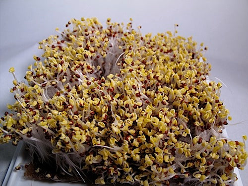 Yields approximately as many Micro-Greens (by weight) as seed "planted" We put quotes around Planted because the seeds are always spread atop a medium - not planted under.