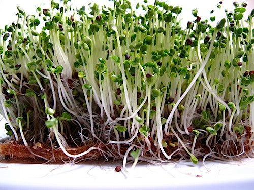 The next obvious step (to us anyway) we find really exciting. It is to grow even fewer seeds into even fewer plants. Those plants will grow more leaves. They will be more like Baby-Greens than Micro-Greens. They will require more time. They may re-grow more quickly because they'll have a bigger root-mass. The container (tray, pot, etc.) they grow in will likely be too small for that root-mass to live long, but it's possible. When it comes right down to it, we're talking about an indoor-garden. All the other stuff we offer is about indoor gardening, but this is more like a garden. Not many of us have space in our homes to Garden inside, but we love the idea. We're working on this, and we'll tell you what we find out as soon as we know something. It was gardening that eventually led us to sprouting. We feel like this is closing that circle started so long ago - now it is sprouting leading back to gardening @:-) Start with Coconut Coir enriched with Earthworm Castings and you'll have a great experience. Happy Micro-Greening!